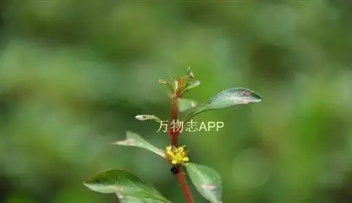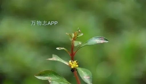 多年生匍匐草本,近无毛,节上生根;茎长达50厘米,茎枝顶端上升。叶卵形至椭圆形,长1-2.2厘米,宽0.5-1.5厘米,先端锐尖,基部骤狭成具翅的柄,侧脉4-7对,无毛;叶柄长2-7毫米。花单生于茎枝上部叶腋,几乎无梗;小苞片2,生花基部;卵状长圆形,长约1.8毫米,宽约0.4毫米;萼片4,卵状三角形,长2-3毫米,宽1-2毫米,先端锐尖,边缘有微毛;花瓣不存在;雄蕊4;花丝长0.5-0.8毫米;花药淡黄色,近基着生,近球形,长0.6-0.9毫米,花粉粒以单体授粉;花盘隆起,绿色,深4裂,无毛,裂片对瓣;花柱绿色,长0.6-1毫米,无毛;柱头绿色,头状,径0.3-0.5毫米。