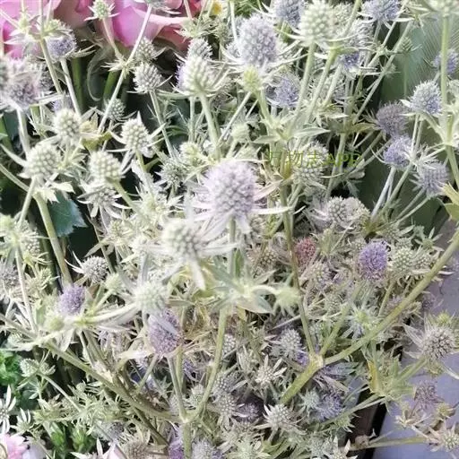 几乎所有的刺芹都是优秀的鲜花和干燥花材料。这些花朵在室内作为干燥花时,依然可以保持它们美丽的蓝色色泽。在整个花序和花苞片变蓝后就可以收获花朵了。当前市场上常见的主要品种有:蓝精灵(Bule Hobbit)、蓝闪光(Glitter Bule)、白闪光(Glitter White)等若干品种。其中,‘蓝精灵’扁叶刺芹,需全光,株高约30cm,世界上第一个紧凑的盆栽刺芹属植物,春季植株在12-18℃的温度条件下开始生长,不耐高温。
