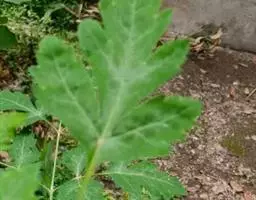 多年生直立草本,高约75厘米。根粗厚,圆柱形,通常不分枝,表皮棕褐色。茎灰白色、淡紫灰色至深紫色,单生,坚硬,光滑,上部3歧式1-4回叉状分枝,基部常残留枯死的叶或成纤维状。基生叶长椭圆状卵形,长5-8.5厘米,宽2.5-5厘米,边缘有粗锯齿,齿端刺尖,基部心形至深心形,表面绿色,背面淡绿色,无毛,叶脉7-9条,掌状,两面隆起;叶柄长6-11.5厘米;茎下部叶有短柄,与基生叶同形或有分裂,茎上部叶无柄,浅裂至3-5深裂,裂片披针形,边缘疏生1-4刺状齿,表面及边缘略带浅蓝色。