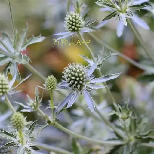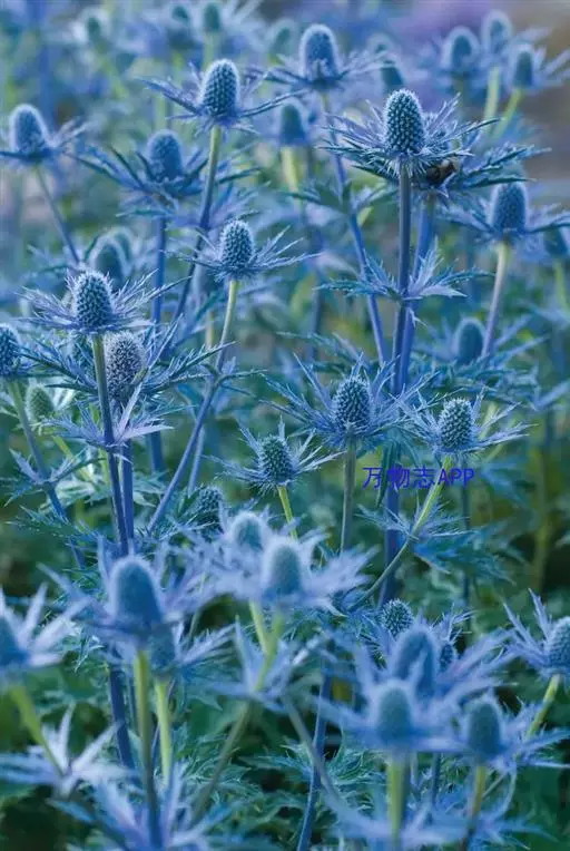 扁叶刺芹,伞形科 刺芹属 ,多年生草本。高约75cm,茎灰白色、淡紫灰色至深紫色坚硬光滑,上部分枝。基生叶长椭圆状卵形,边缘有粗锯齿。头状花序着生于每一分枝顶端,圆卵形、阔卵形或半球形;花浅蓝色,花瓣与萼片互生,膜质透明。果实长椭圆形,卵形或近圆形,花果期7-8月。扁叶刺芹是一种典型的干旱植物,即使是在恶劣环境里也充满活力,直立的茎叶,漂亮的蓝色花序,是一种很好的切花和干燥花。