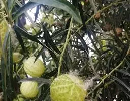 蓇葖形状多变,内果皮亮黄色;种子长约2厘米;种毛白色绢质,长4厘米。花期春夏季,果期秋冬季。