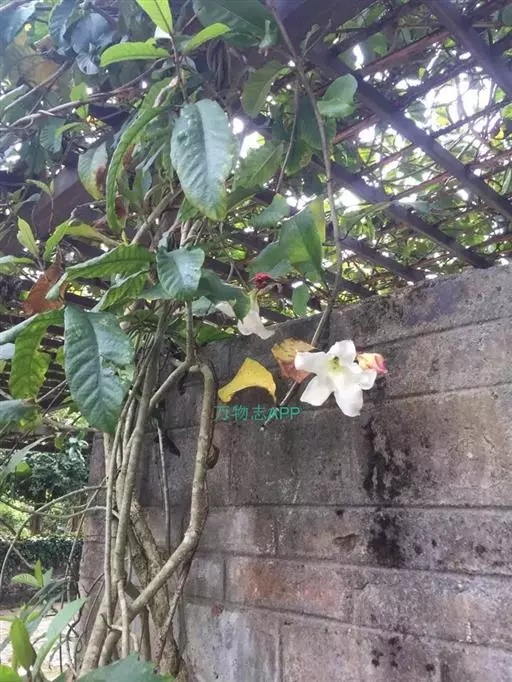 高大藤本;枝幼时有锈色柔毛,老时无毛、茎有皮孔。叶长圆状倒卵形,长6-15厘米,宽3-8厘米,顶端短渐尖,幼时略被柔毛,老渐无毛,稀叶背被浓毛;侧脉约15对;叶柄长2厘米。