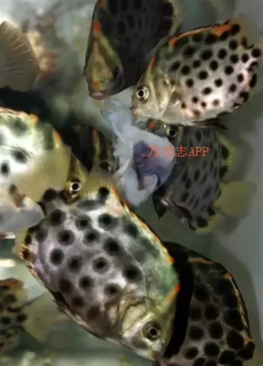 ①红金鼓鱼(饰纹金钱鱼,Scatophagus ornatus):鱼体黄红色,布以黑色圆斑,背鳍后部、臀鳍后部和尾鳍均为银白色。