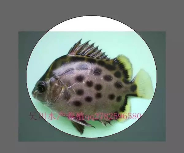 属于金钱鱼科。体略呈椭圆形,侧扁而高,背鳍硬棘与软条间具有深缺刻,体表呈褐色,腹缘银白色,鱼体上有许多深色圆斑。