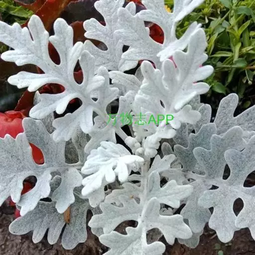 花坛花卉|草坪及地被观叶类 ,其银白色的叶片远看像一片白云,与其他色彩的纯色花卉配置栽植,效果极佳,是重要的花坛观叶植物。