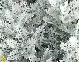 银叶菊(学名:Jacobaea maritima (L.) Pelser & Meijden)是菊科,千里光属的多年生草本植物。植株多分枝,高度一般在50~80厘米,叶一至二回羽状分裂,正反面均被银白色柔毛。其银白色的叶片远看像一片白云,与其他色彩的纯色花卉配置栽植,效果极佳,是重要的花坛观叶植物。