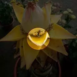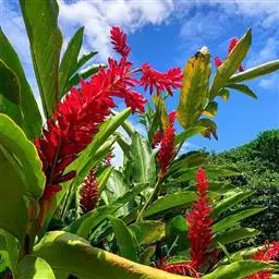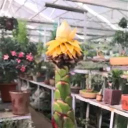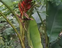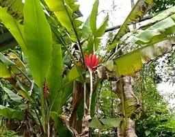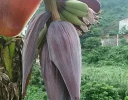 紫苞芭蕉形如一枝亭亭玉立、含苞待放的荷花,但却开在高高的芭蕉树上,这就是紫苞芭蕉。