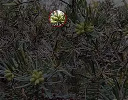 症状特点:全株性病害。叶片狭小,直立状,叶缘黄化,断断续续的深绿色条纹(俗称"起青筋")。本病因顶部叶片成束而得名。病株一般不抽花蕾,故又称"蕉公"。现蕾前后发病,如叶片已出齐,则不表现"束顶",叶片也不狭小、黄化,但幼嫩叶片主脉仍现"青筋",抽出的花蕾直牛,不结蕉或结蕉性能极差,果小而少,果端细如指头,果肉腕、无香味。