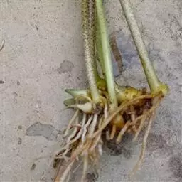 ⑵褛衣芽 褛衣芽一般在上一年的8、9、10月长出,因遇干旱,寒冷不长,冬天来临时叶变枯。由于低温,缺水,上部长得较慢,下部积累营养,因而养分充足,型状上小下大,根系多,一般在2、3月份种植时用。种植后是先发根,后抽叶。