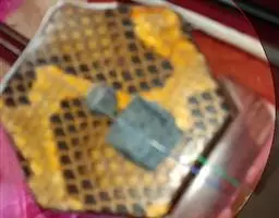 1、 在塑料袋中放入饼干用擀面杖碾碎,移到容器中;