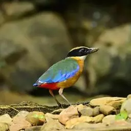 蓝翅八色鸫是雀形目八色鸫科的鸟类。体长17-20厘米,体重类约48-70克,体型圆胖,尾短,腿长,…