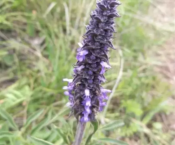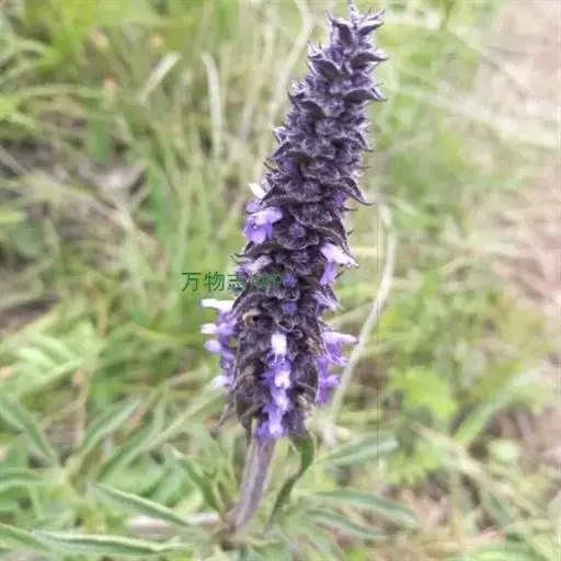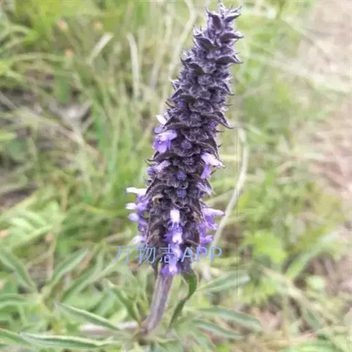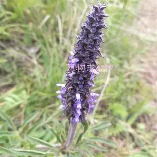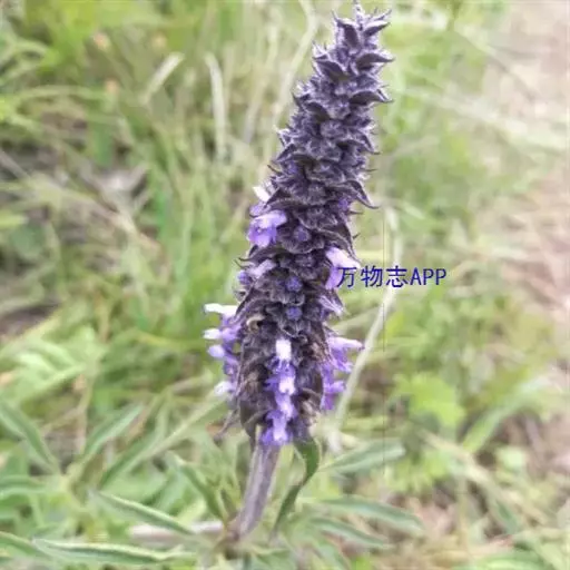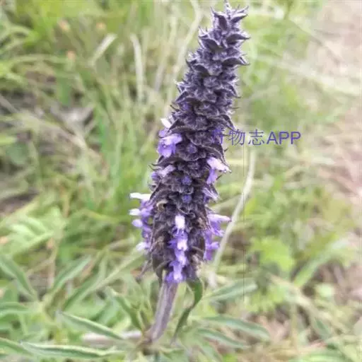 花序为多数轮伞花序组成的顶生穗状花序,长2-13厘米,通常生于主茎上的较长大而多花,生于侧枝上的较小而疏花,但均为间断的;苞片叶状,下部的较大,与叶同形,上部的渐变小,乃至与花等长,小苞片线形,极小。花萼管状钟形,长约3毫米,径1.2毫米,被灰色疏柔毛,具15脉,齿5,三角状披针形或披针形,先端渐尖,长约0.7毫米,后面的较前面的为长。花冠青紫色,长约4.5毫米,外被疏柔毛,内面无毛,冠筒向上扩展,冠檐二唇形,上唇先端2浅裂,下唇3裂,中裂片最大。雄蕊4,后对较长,均内藏,花药蓝色。花柱先端近相等2裂。小坚果长圆状三棱形,长约1.5毫米,径约0.7毫米,褐色,有小点。花期7-9月,果期在9月以后。