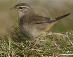 雌鸟上体橄榄褐色,头侧和颈侧橄榄灰色具白色眉纹和白色颧纹(有的无白色颧纹),两翅和尾橄榄褐色或淡褐色,外翈羽缘暗黄色或淡黄色,中央尾羽棕褐或暗褐色,外侧尾羽暗褐色具白色端斑。颏和喉污白色,胸和两胁棕褐或灰棕色,腹白色沾棕。
