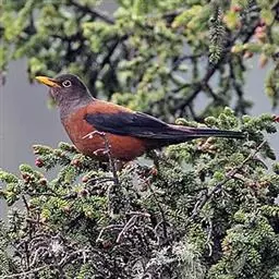 黑胸歌鸲主要栖息于海拔3000-4500米的高山灌丛草甸和亚高山针叶林中,尤以河谷、溪边灌丛、冷杉林和山坡稀疏松林、灌丛草地较常见,冬季也下到山脚和低山山谷地带。