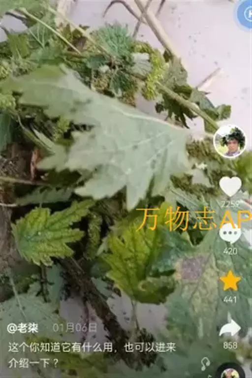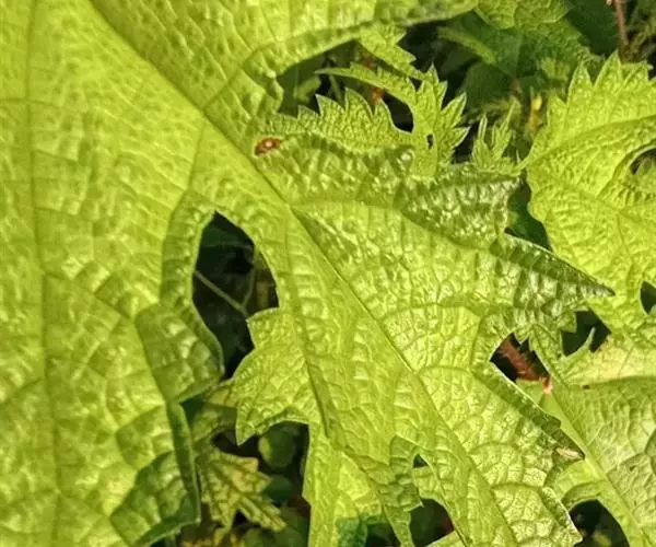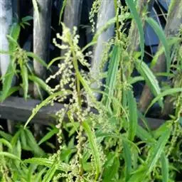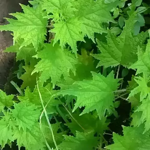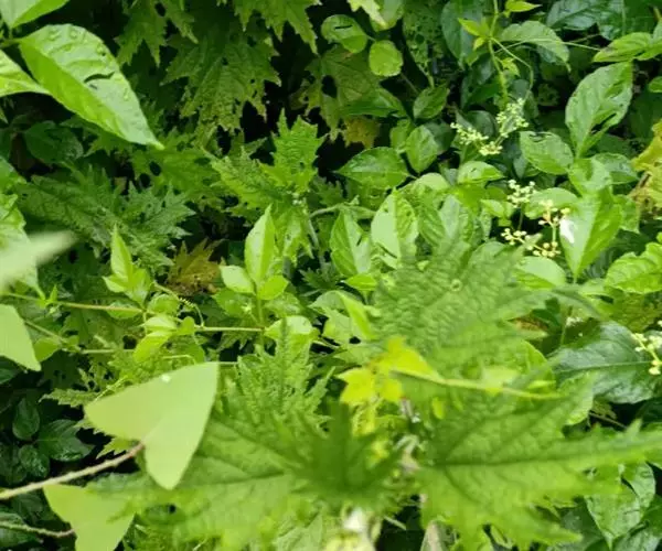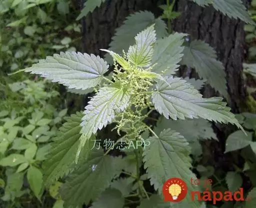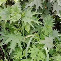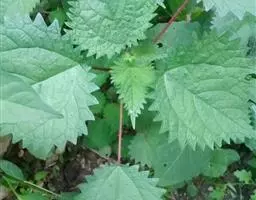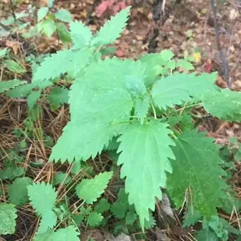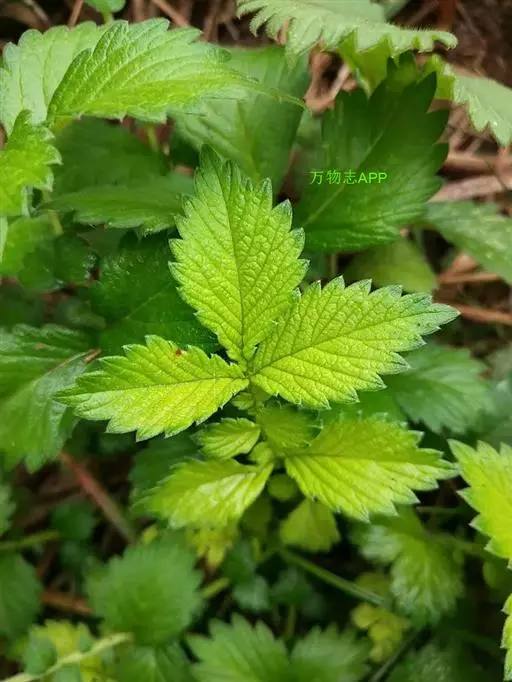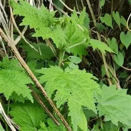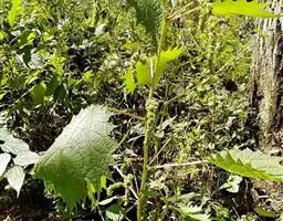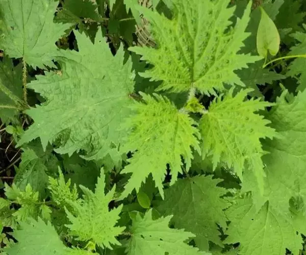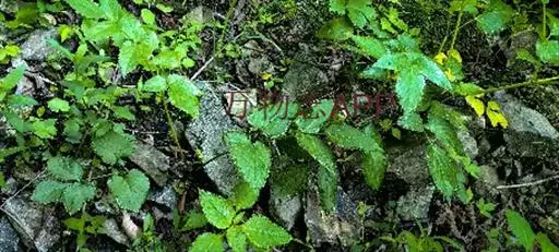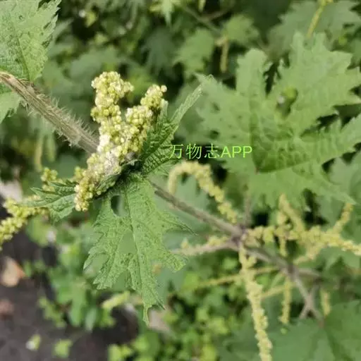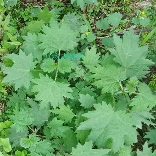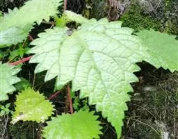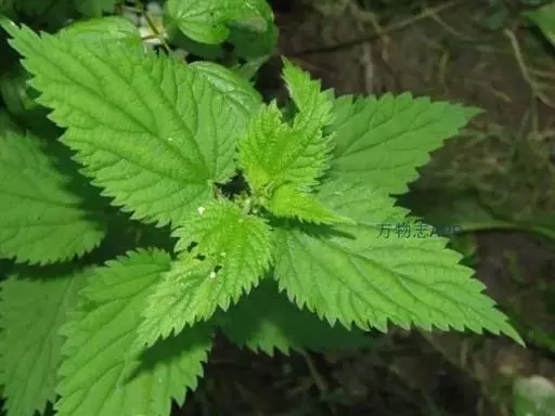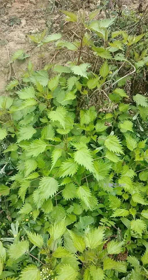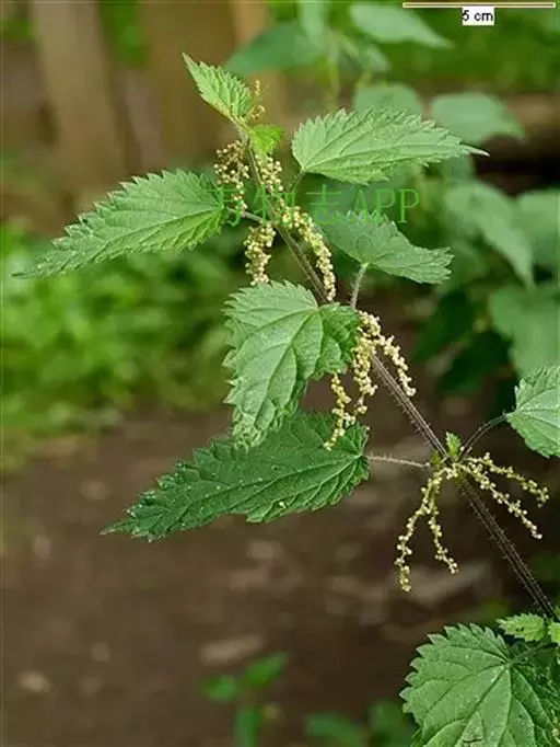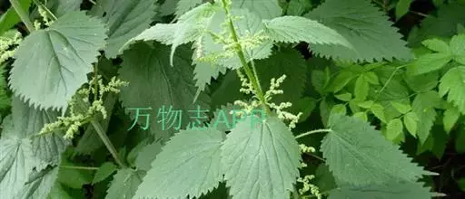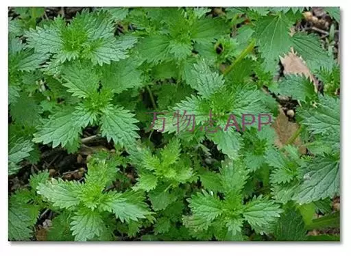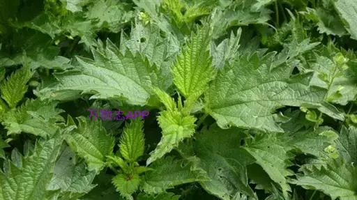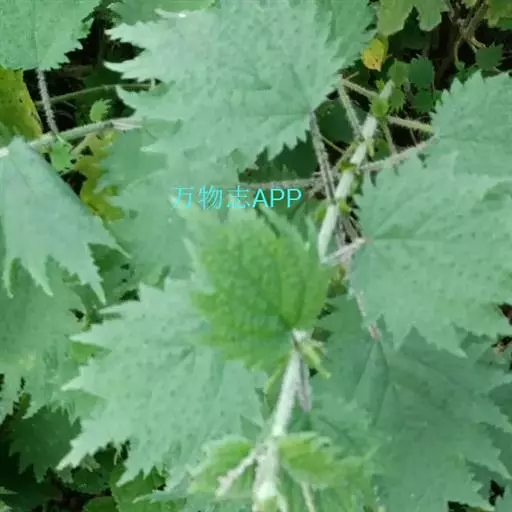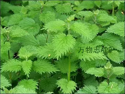 荨麻(学名:Urtica fissa E. Pritz.):多年生草本植物,高可达100厘米,四棱形,分枝少。叶片近膜质,宽卵形、椭圆形、五角形或近圆形轮廓,裂片自下向上逐渐增大,三角形或长圆形,上面绿色或深绿色,下面浅绿色,叶柄密生刺毛和微柔毛;托叶草质,绿色,雌雄同株,花序圆锥状,雄花具短梗,花被片在中下部合生,雌花小,几乎无梗;瘦果近圆形,表面有带褐红色的细疣点;8-10月开花,9-11月结果。