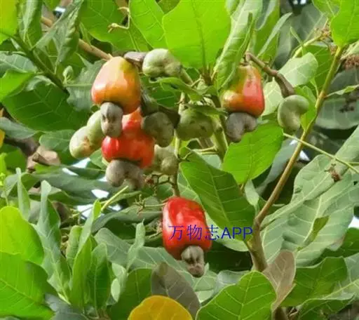 腰果,Anacardium occidentalie Linn,是双子叶植物纲、无患子目、漆树科、腰果属的一种植物。又名槚如树、鸡腰果、介寿果。常绿乔木,树干直立,高达10米。腰果是一种肾形坚果,无患子目漆树科腰果属。原产于美洲。