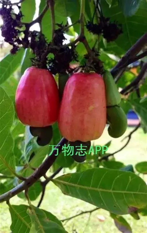 核果肾形,两侧压扁,长2-2.5厘米,宽约1.5厘米,果基部为肉质梨形或陀螺形的假果所托,假果长3-7厘米,最宽处4-5厘米,成熟时紫红色;种子肾形,长1.5-2厘米,宽约1厘米。