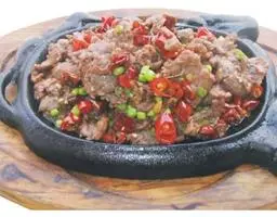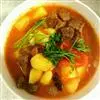 (3)烧热油3大匙,爆香蒜茸,下咖喱酱及糖1小匙炒香,倒入牛肉,爆透后加水盖过牛肉,煮滚后转慢火,炖至筷子可以插入牛肉时即可放余下的调味料,继续炖至牛肉够烂时,加入土豆再炖片刻,最后加入洋葱即成。