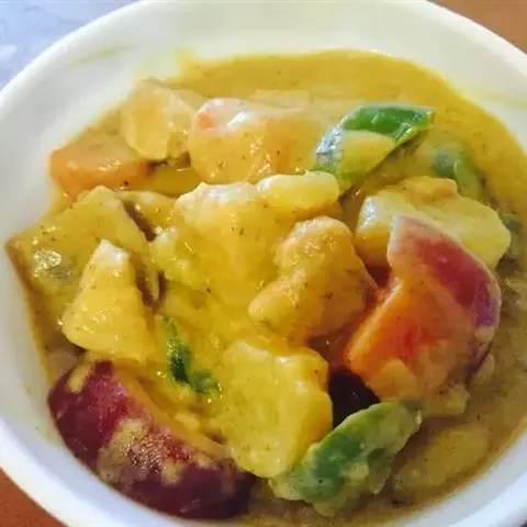4、加入胡萝卜、土豆、洋葱炖煮10分钟后,加入椰浆和咖喱块再煮5分钟后即可出锅。