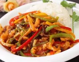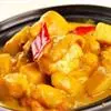 (2)土豆去皮切角块,用油炸至色泽金黄时盛起;烧热油1大匙,将洋葱炒香后盛起备用。