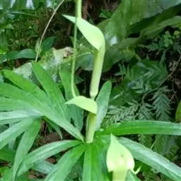 渐从囊内浮出,由一细弱的柄与母体相连。花未见,据记载,肉穗花序有2个雄花和1个雌花。