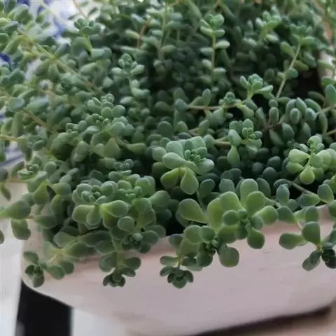 白霜,景天科景天属小型多肉植物,叶子绿色肉质会有白霜覆在表面。