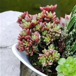 八千代是景天科,景天属多年生肉质植物。植株呈小灌木状,高可达30厘米,多分枝。…