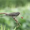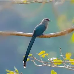 绿嘴地鹃:体形似小鸦鹃,但羽色大致绿灰;嘴绿色,头侧眼的周围有一裸区;后爪弯曲。虹膜赤红色,…