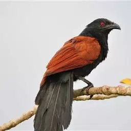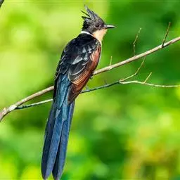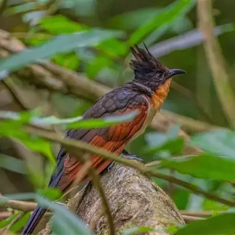 红翅凤头鹃:体长约38厘米,顶冠及凤头黑色,具显眼的直立凤头,背及尾黑色而带蓝色光泽,翅栗红色,…