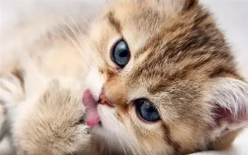 8、腹部应稍圆,手感摸不到肋骨,如果猫腹膨大的话,有可能是蛔虫感染或腹膜炎的症状,小猫肚子略为凸出为正常现象;