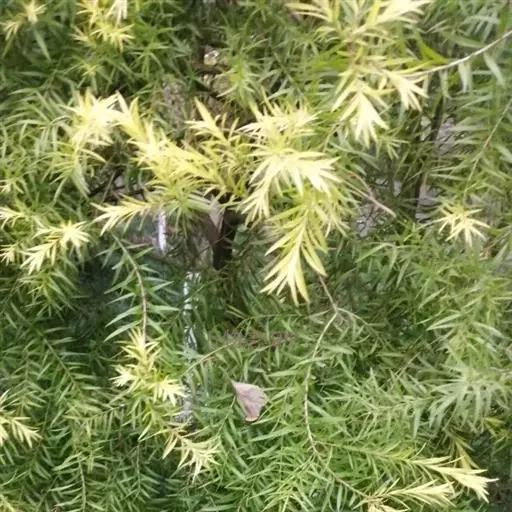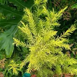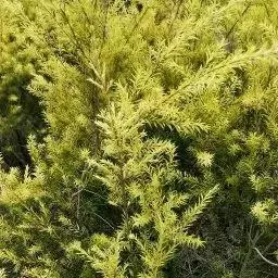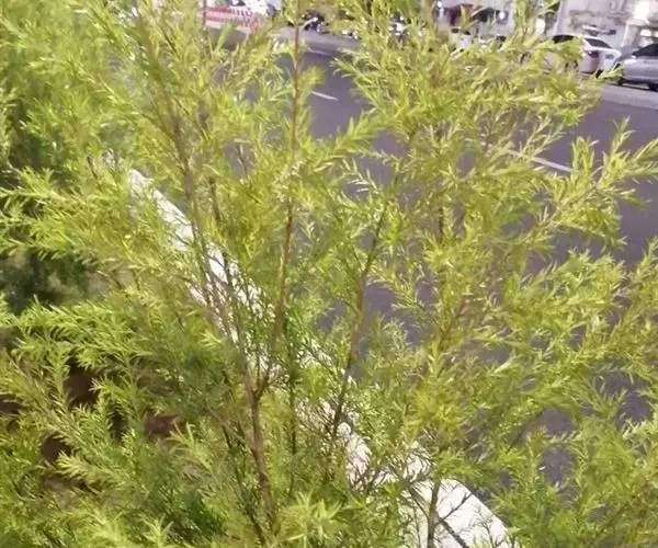 常绿灌木或小乔木,株高2~5米。叶互生,叶细小,披针形或狭线形,密集分布,金黄色或鹅黄色,夏至秋季开花,花乳白色,但以观叶为主,树冠金黄柔美,风格独具。