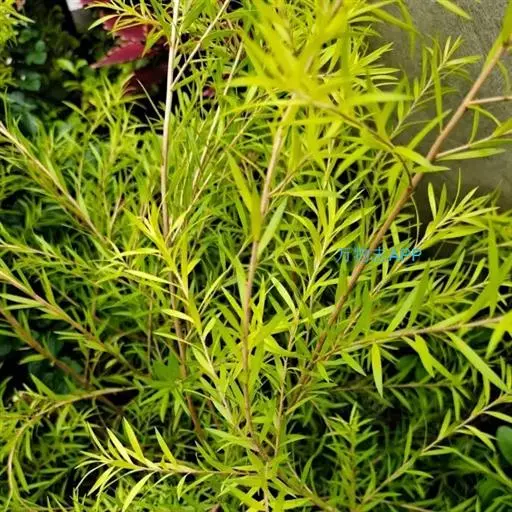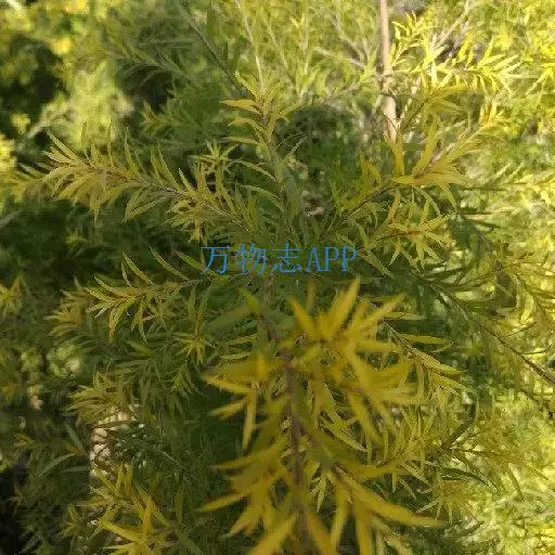 黄金串钱柳为桃金娘科白千层属常绿乔木,在广州,叶片秋、冬、春三季表现为金黄色,夏季由于温度较高为鹅黄色。1999年由新西兰首次引入我国。深根性树种,主干直立,枝条细长柔软,嫩枝红色,且韧性很强。抗风力强,在海边长势非常好。不仅可用于庭园案观、道路美化(用于行车道隔离带、人行道隔离带的造型小乔禾或行道树)、小区绿化,还可用于林相改造;同时,由于其抗盐碱、耐强风的特性,非常适于海滨及人工填海造地的绿化造莆、防风固沙等叶片芳香宜人,其含的芳香油是目前世界上珍贵的化妆品香料之一。