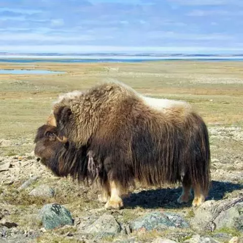 麝牛,是偶蹄目牛科麝牛属哺乳动物。麝牛体型大,但低矮粗壮,头大,吻部宽,眼小;雌雄均具角,四肢短粗,…