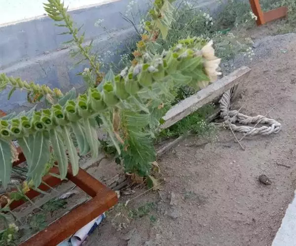 二年生草本,高达1米,全体被粘性腺毛。根较粗壮,肉质而后变纤维质,直径约2-3厘米。一年生的茎极短,自根茎发出莲座状叶丛,卵状披针形或长矩圆形,长可达30厘米,宽达10厘米,顶端锐尖,边缘有粗牙齿或羽状浅裂,主脉扁宽,侧脉5-6条直达裂片顶端,有宽而扁平的翼状叶柄,基部半抱根茎;第二年春茎伸长而分枝,下部渐木质化,茎生叶卵形或三角状卵形,顶端钝或渐尖,无叶柄而基部半抱茎或宽楔形,边缘羽状浅裂或深裂,向茎顶端的叶成浅波状,裂片多为三角形,顶端钝或锐尖,两面除生粘性腺毛外,沿叶脉并生有柔毛,长4-10厘米,宽2-6厘米。