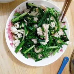 韭菜与虾仁配菜,能提供优质蛋白质,同时韭菜中的粗纤维可促进胃肠蠕动,保持大便通畅。