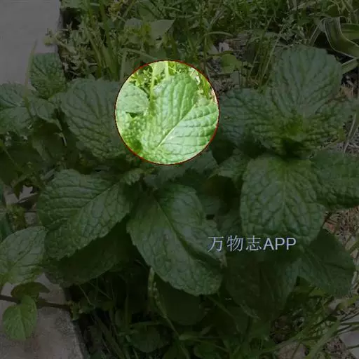 多年生草本。茎直立,高40-130厘米,无毛或近于无毛,绿色,钝四稜形,具槽及条纹 留兰香 ,不育枝仅贴地生。叶无柄或近于无柄,卵状长圆形或长圆状披针形,长3-7厘米,宽1-2厘米,先端锐尖,基部宽楔形至近圆形,边缘具尖锐而不规则的锯齿,草质,上面绿色,下面灰绿色,侧脉6-7对,与中脉在上面多少凹陷下面明显隆起且带白色。