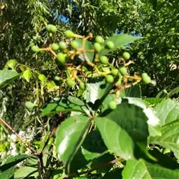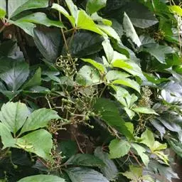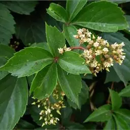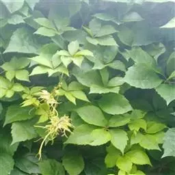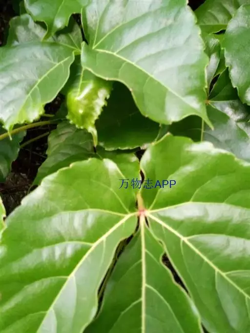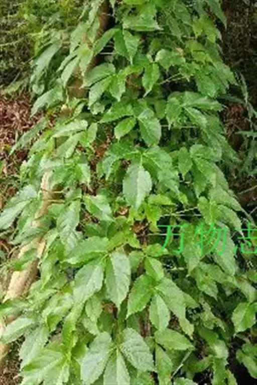 木质藤本。小枝圆柱形,嫩时被疏柔毛,以后脱落几无毛。卷须总状4-6分枝,相隔2节间断与叶对生,顶端嫩时尖细卷曲,后遇附着物扩大成吸盘。叶为3小叶,着生在短枝上,中央小叶倒卵椭圆形或倒卵圆形,长6-13厘米,宽3-6.5厘米,顶端骤尾尖,基部楔形,最宽处在上部,边缘中部以上每侧有6-11个锯齿,侧生小叶卵椭圆形或长椭圆形,长5-10厘米,宽(2) 3-5厘米,顶端短尾尖,基部不对称,近圆形,外侧边缘有7-15个锯齿,内侧边缘上半部有4-6个锯齿,上面绿色,下面浅绿色,下面中脉和侧脉上被短柔毛;侧脉4-7对,网脉两面不明显或微突出;叶柄长3.5-15厘米,疏生短柔毛,小叶几无柄。多歧聚伞花序着生在短枝上,花序基部分枝,主轴不明显;花序梗长1.5-3.5厘米,无毛或被疏柔毛;花梗长2-3毫米,无毛;花蕾椭圆形,高2-3毫米,顶端圆形;萼碟形,边缘全缘,无毛;花瓣5,卵椭圆形,高1.8-2.8毫米,无毛;雄蕊5,花丝长0.6-0.9毫米,花药卵椭圆形,长0.4-0.6毫米;花盘不明显;子房扁球形,花柱短,柱头不扩大。果实近球形,直径0.6-0.8厘米,有种子1-2颗;种子倒卵形,顶端圆形,基部急尖成短喙,种脐在背面中部呈圆形,腹部中棱脊突出,两侧洼穴呈沟状,从基部向上斜展达种子顶端。花期5-7月,果期9-10月。 [1-3]