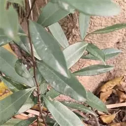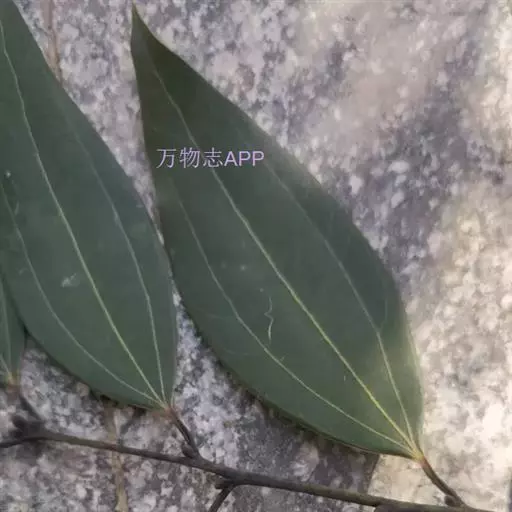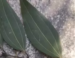 叶对生,革质,椭圆形至长椭圆形,长6-14cm。宽3-7cm,先端钝或短尖头,基部浑圆或阔楔形,深绿色且有光泽,具透明小腺点,揉之有香气,侧脉近平行斜出于叶缘连成边脉;叶柄长约2cm。