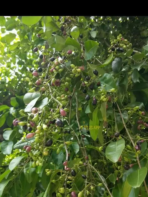 核果状浆果,椭圆或卵圆形,直径1-1.5cm,熟时由紫红色变紫黑色,具光泽,果皮多汁如墨。种子1粒,紫棕色,状似落花生种子。花期3-5月;果熟期7-8月。
