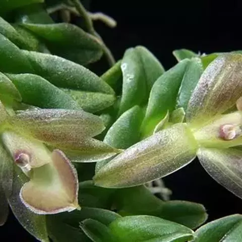 红花隔距兰 Garay):植株通常悬垂。茎细圆柱形,长达70厘米,粗3-4毫米,分枝或不分枝,…