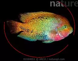 红魔鬼鱼,学名为厚唇双冠丽鱼,也叫火鹤鱼,是慈鲷科丽体鱼属下的一种观赏鱼类。血鹦鹉鱼的父本鱼种。…