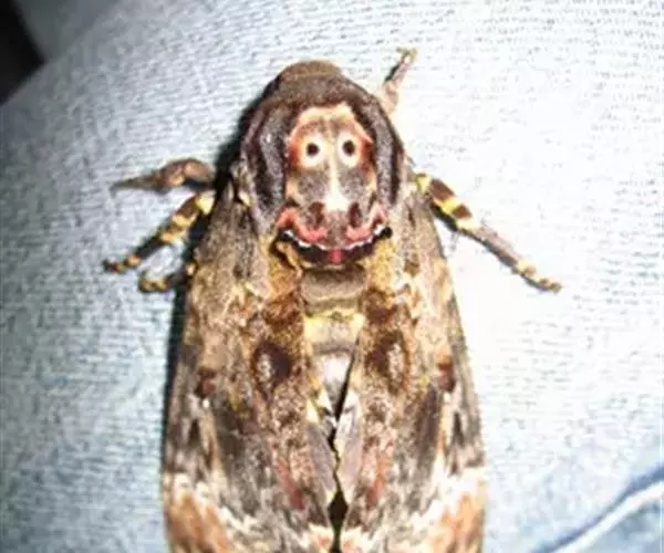 以成虫胸部背面的骷髅形斑纹而得名,以茄科、豆科、木犀科、紫葳科、唇形科为寄主。夜晚会趋光,白天停栖与翅色近似的树干上。