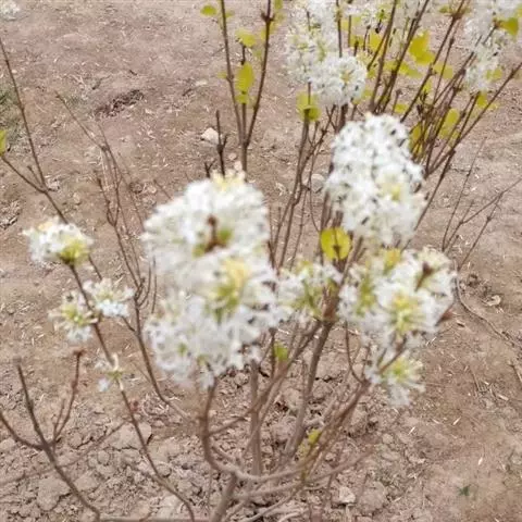 落叶灌木,高可达3米;幼枝、叶下面、叶柄及花序均被由黄白色簇状毛组成的绒毛;芽常被带锈褐色簇状毛;二年生小枝稍四角状,灰褐色,老枝圆筒形,散生圆形小皮孔。叶纸质,卵状椭圆形、宽卵形或近圆形,长3-6(-8)厘米,顶端钝或圆形,有时微凹或稍尖,基部圆形,边缘有较密的小尖齿,初时上面疏被叉状或簇状短毛,侧脉5-7对,近缘处互相网结或部分直伸至齿端,连同中脉上面凹陷,下面凸起,小脉两面稍凸起;叶柄长7-10(-15)毫米。