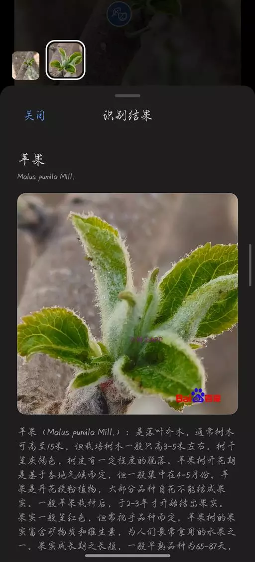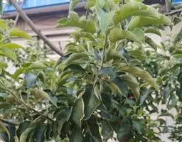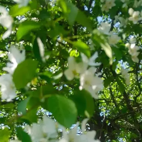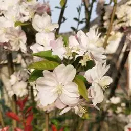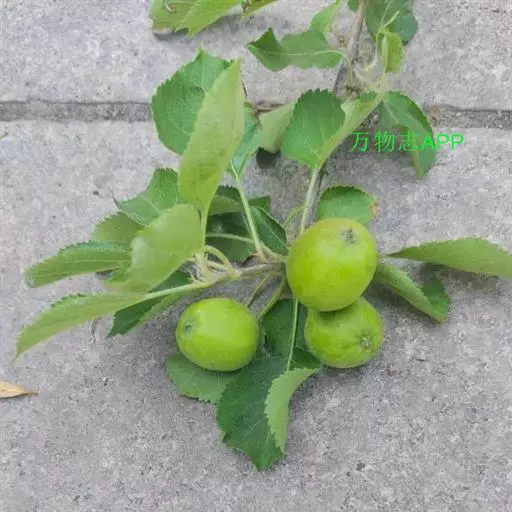 蔷薇科 ,苹果 属落叶乔木,高达15米,树干灰褐色,老皮有不规则的纵裂或片状剥落,小枝幼时密生绒毛,后变光滑,紫褐色。叶序为单叶互生,椭圆形到卵形,长4.9~10厘米,先端尖,缘有圆钝锯齿,幼时两面有毛,后表面光滑,暗绿色。花白色带红晕,径3~5厘米,花梗与花萼均具有灰白色绒毛,萼叶长尖,宿存,雄蕊20,花柱5,大多数品种自花不育,需种植授粉树。果为略扁之球形,径5厘米以 上,两端均凹陷,端部常有棱脊。花期4~6月,果期7~11月果熟。