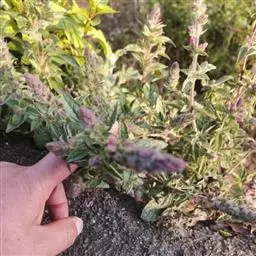 紫花野芝麻属于草本植物。单叶对生,叶片为卵形,具锯齿,轮伞花序,花朵为淡紫近白色。原产于欧洲、北非和西亚。