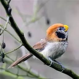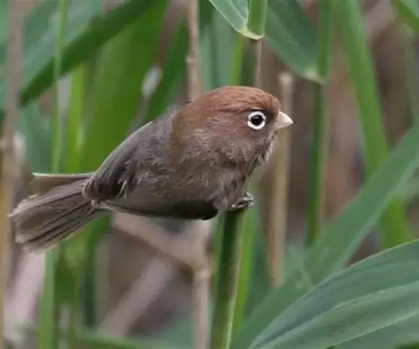 白眶鸦雀是莺科、鸦雀属小型鸟类,体长12-14厘米。嘴黄色、短而粗厚,头顶至后颈褐色沾棕具白色眼圈,…