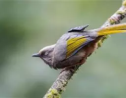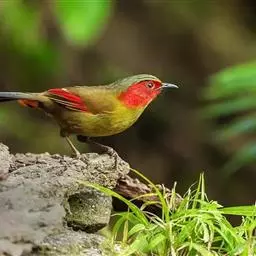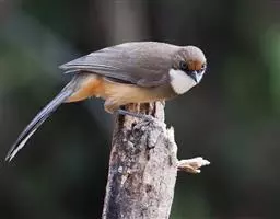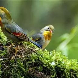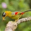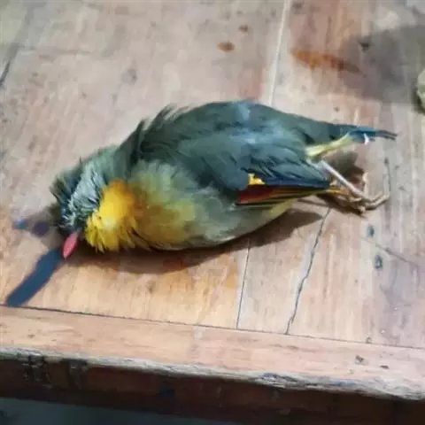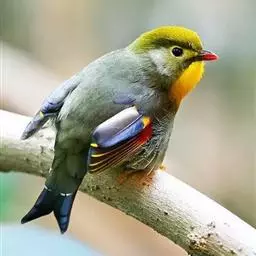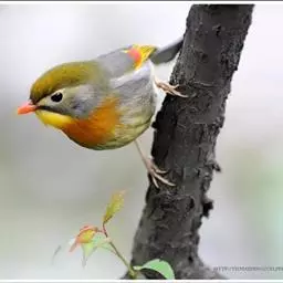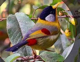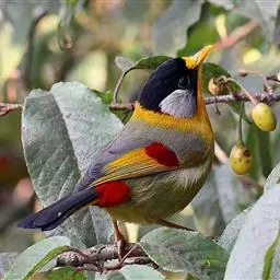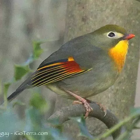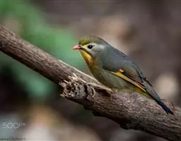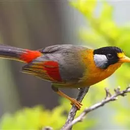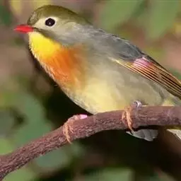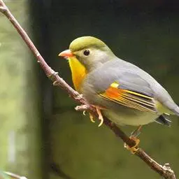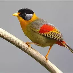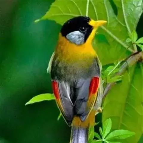 银耳相思鸟小型鸟类,体长14~18厘米。头顶黑色,耳羽银灰色,前额橙黄色;外侧飞羽橙黄色,基部朱红色,…
