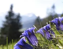 龙胆属植物花色艳丽,色彩丰富,有紫、白、蓝、黄白等多种颜色,适宜作为花坛、花镜或盆花。 龙胆最高不过四、五十厘米,大部份是矮小贴地丛生。一株上有许多分枝,花生于枝上顶端,成古钟形或漏斗形,有4-5个裂瓣,全缘的,也有细裂的成流海似的须。龙胆花在秋冬季一片枯黄的草丛中临风开放,显得分外朴实和幽静,龙胆开花一片片一簇簇,临风摇曳,显出一种淡雅、素静的美,因而成为著名的花卉。