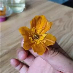 花朵长成商品花后,要及时采摘,否则花瓣会自动脱落,以2-3天1次为宜。采摘时,随温度升高,可在棚上用遮阳网、喷泥浆或用旧塑料等方式遮阳,控制温度大棚温度不超过30℃。采摘时花柄控制在1厘米左右以下,要无露水、无杂质、无霉变的花,不能过夜。