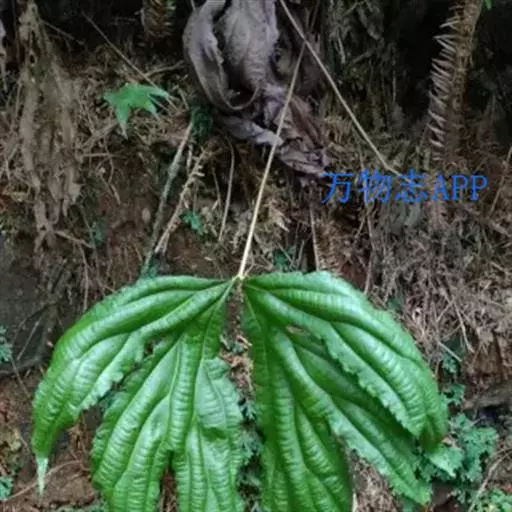 植株高60-90厘米。根状茎长而横走,木质,被钻状黑色披针形鳞片。叶远生;叶柄长30-60厘米,灰棕色或淡禾秆色;叶片纸质,下面沿主脉疏生灰棕色有节的硬毛,长20-30厘米,宽30-60厘米,中部分裂成两部分相等的扇形,每扇又再深裂为4-5部分,裂片宽5-8厘米,顶部再度浅裂,末回裂片短尖头,边缘有粗锯齿。主脉多回二歧分叉,小脉网状,网眼内有单一或分叉的内藏小脉。孢子囊群小,近圆形,散生于网脉交结点上,被浅杯状的隔丝覆盖。